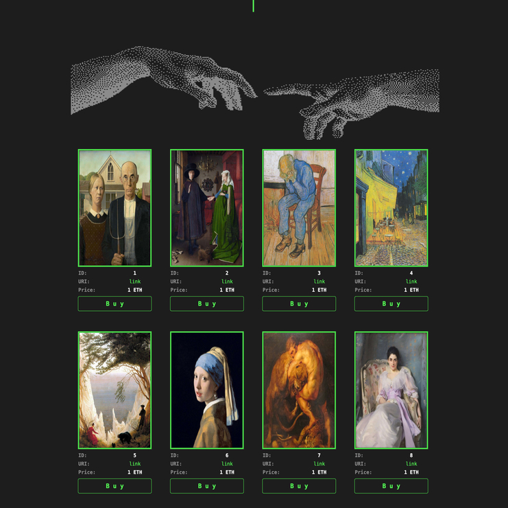 Technologies Used: IPFS, Smart Contracts, React, web3, truffle, ethereum, Solidity, chai-testing, ethers, hardhat, ERC721